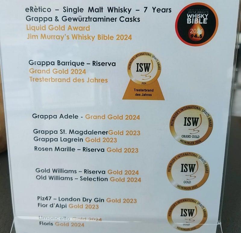 Upon inheriting the family business, Werner started moving more into cask ageing. Today, he manages a portfolio of 50 products. By now, he has almost 30 years of practice ageing spirits in casks. His oak-aged grappas won awards just this year. He describes to me how ageing fruit spirits can be especially tricky: you can easily overwhelm or remove all the fruit flavour!