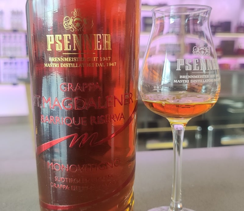 Speaking of grappa, I couldn’t leave Psenner without trying at least one. Werner pours me some bright red St Magdalena. This is made using a local red wine grape, and the nose is a little sour and earthy. However, as I taste it, there’s sweetness, hazelnuts, walnuts, and the finish is lavender and violets. This is not only a nice grappa - certainly the best I’ve ever tried - but the St Magdalena grappa casks are what Werner uses to age the eRètico grappa expression.