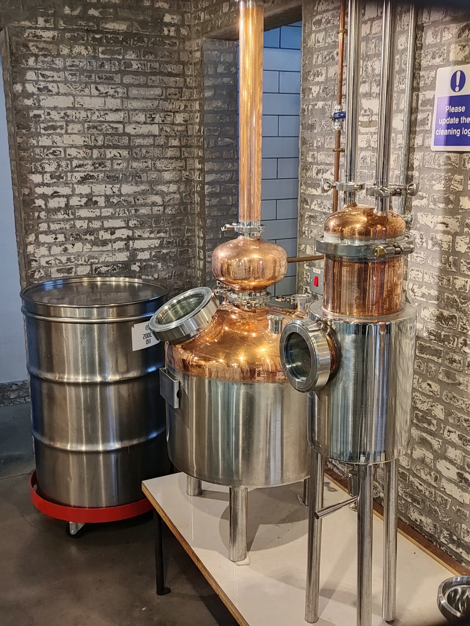 Walking into their whiskey making space, I notice there's a distinct cheesy funk to it. Not an off note, but very distinctive. Turns out I'm standing in the room which also functions as their malting floor ! In the corner, there's a tank where the barley steeps before being laid out for a traditional floor malting. A big challenge has been the poor temperature control of the building; an old pub isn't designed to also be an efficient maltings. IWW did initially try to kiln their malt in an old shipping container, but apparently that was no good.